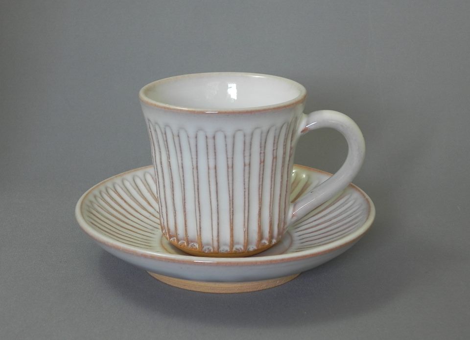 白コーヒーカップ&ソーサー(しのぎ)